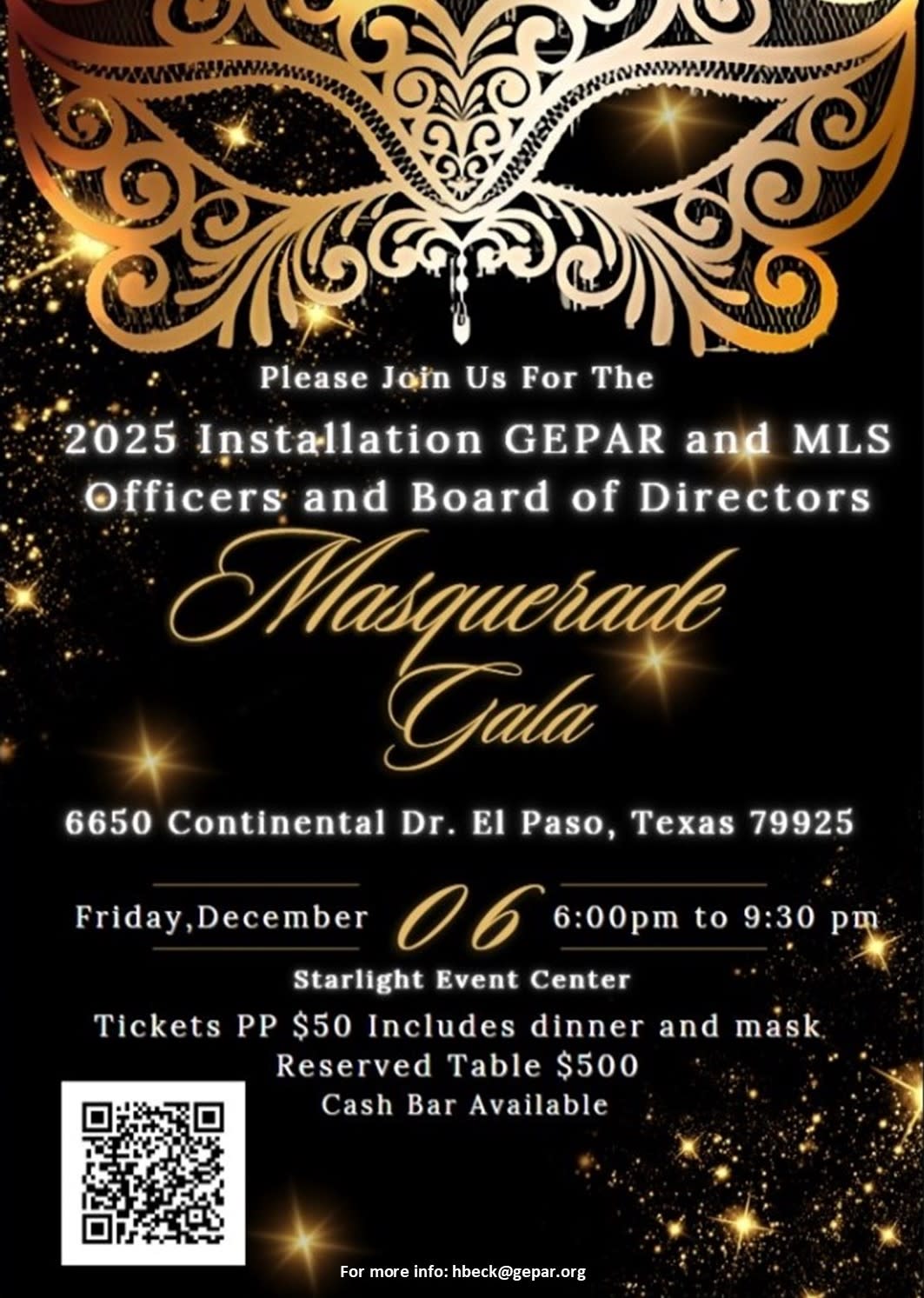 Join us for this Masquerade Gala to install 2025 GEPAR Officers and Directors and 2025 MLS President, Award Presentations and Dinner.